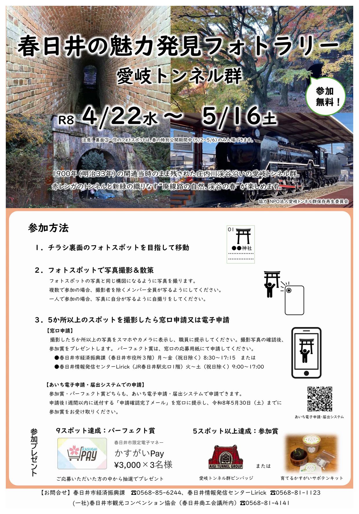 昨年の春、秋、冬と見どころ (場所) を決めて開催されてきたこのフォトラリー。今回、2026年 (令和8年) 春は愛岐トンネル群が選ばれました。どうぞあなたもカメラやスマホでご参加ください。〔画像クリックで拡大表示〕