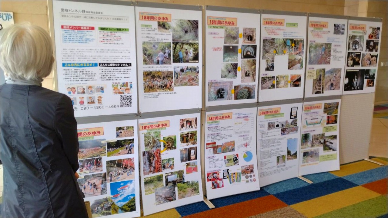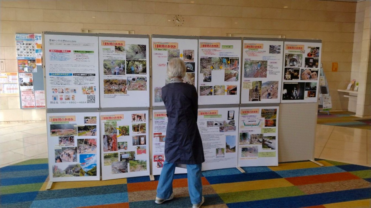 多治見の「ヤマカまなびパーク」の1階のロビーにて、11/23~11/28までの1週間にわたり、当会のパネル展を開催しました。 愛岐トンネル群の18年間の活動の紹介とトンネル群の 四季の写真などを展示。パネルが23枚あり、たいへん濃い内容です。 多くの方にご覧いただけたことと考えます。