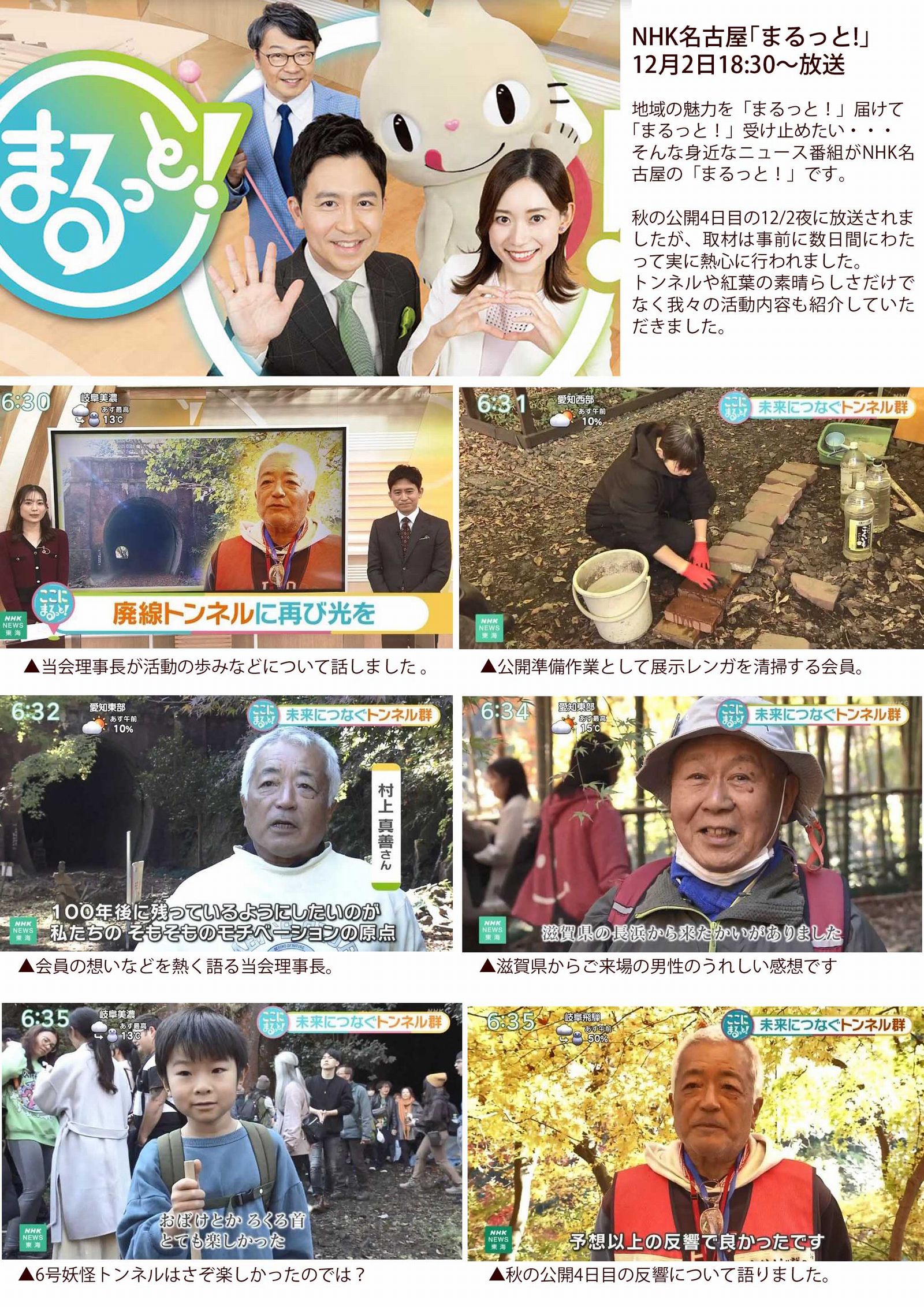 放送ではトンネルや紅葉の素晴らしさだけでなく、我々の想いまで汲み取って紹介していただけました。〔画像クリックでダイジェストを拡大表示〕