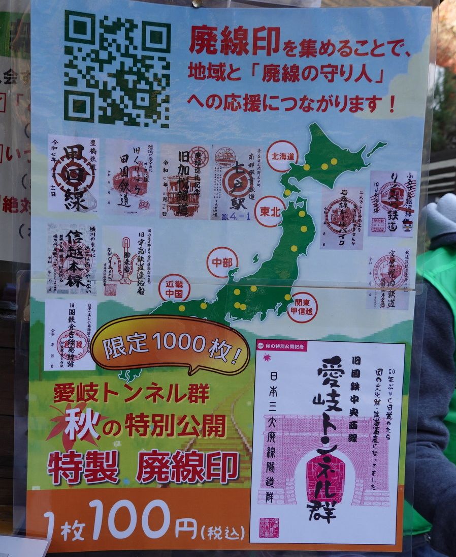 11/15付記事「愛岐トンネル群に『廃線印 」のタイトルで、11/29から秋の公開が始まることと 、廃線印を売り出すことを伝えていただきました。心配しつつ売り出した廃線印の売れ行きや、いかに!