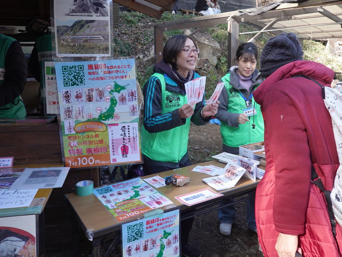 毎年新しい試みをしよう!と、今回は全国で廃線再生に挑む官民各グループと連携して“ご朱印”ならぬオリジナルの「廃線印」を作って販売しました。フタを開けると想像を絶する人気となり、用意した数量が2日で完売、急遽再注文するなど