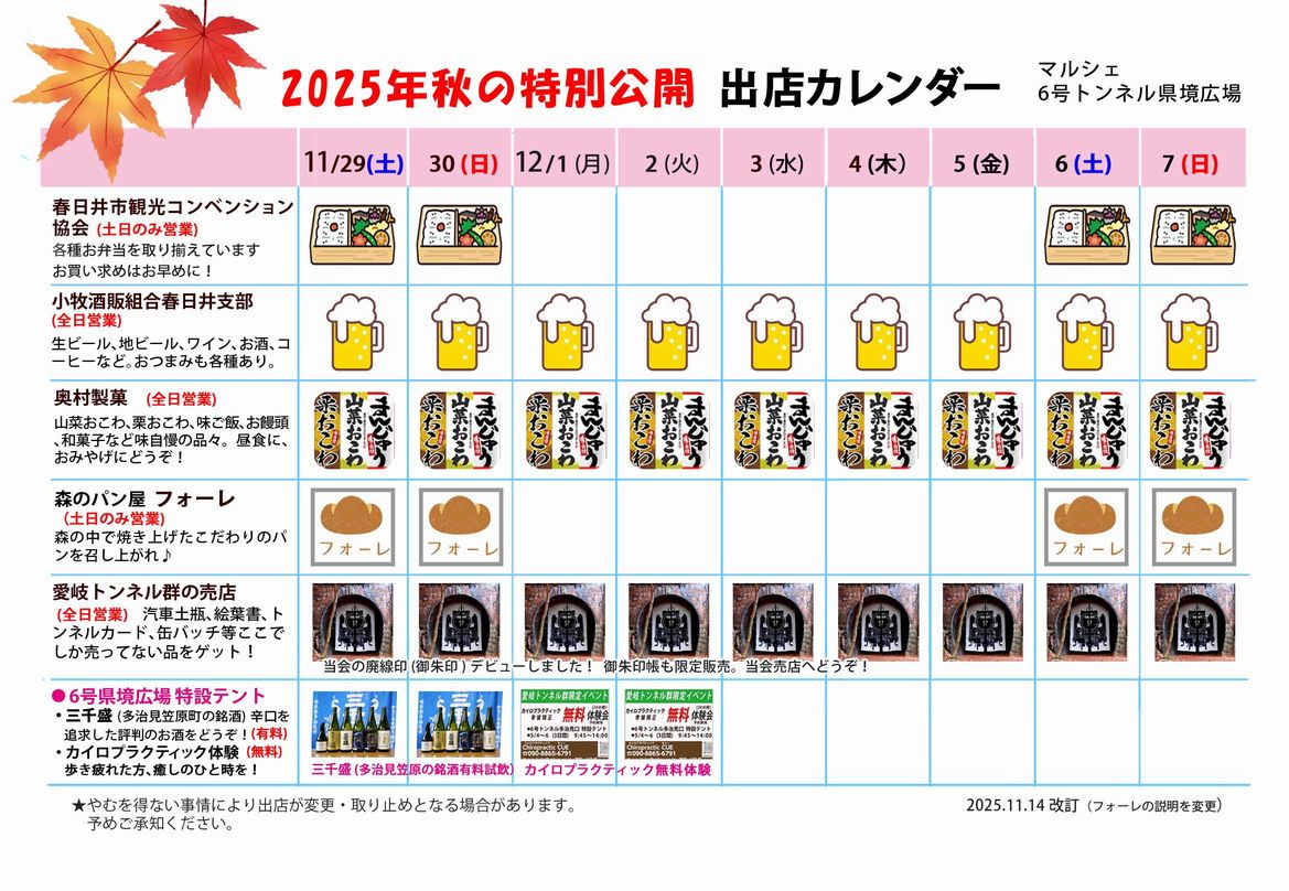 ⑤期間中は場内で弁当・飲料水など販売します。(下記の出店カレンダーを参照)